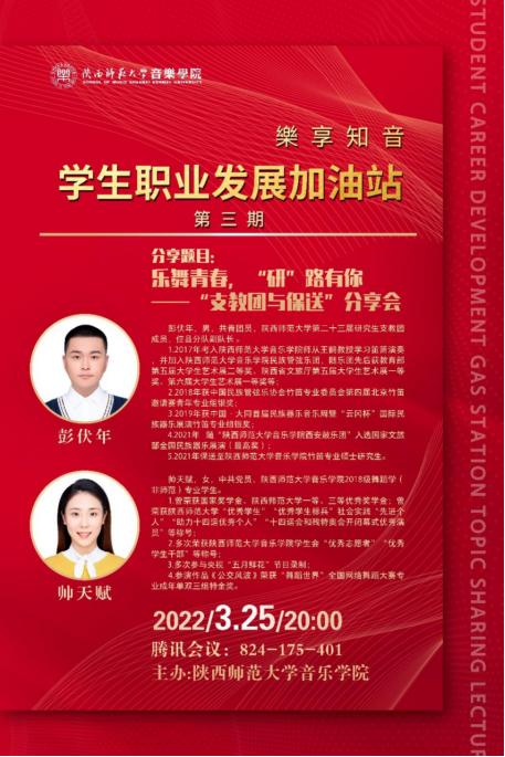 2022年3月25晚,为了帮助同学们了解保研政策,提前做好规划,明确学习目标。新葡京在腾讯会议云端举行了“樂享知音•学生职业发展加油站”(第三期)的活动。