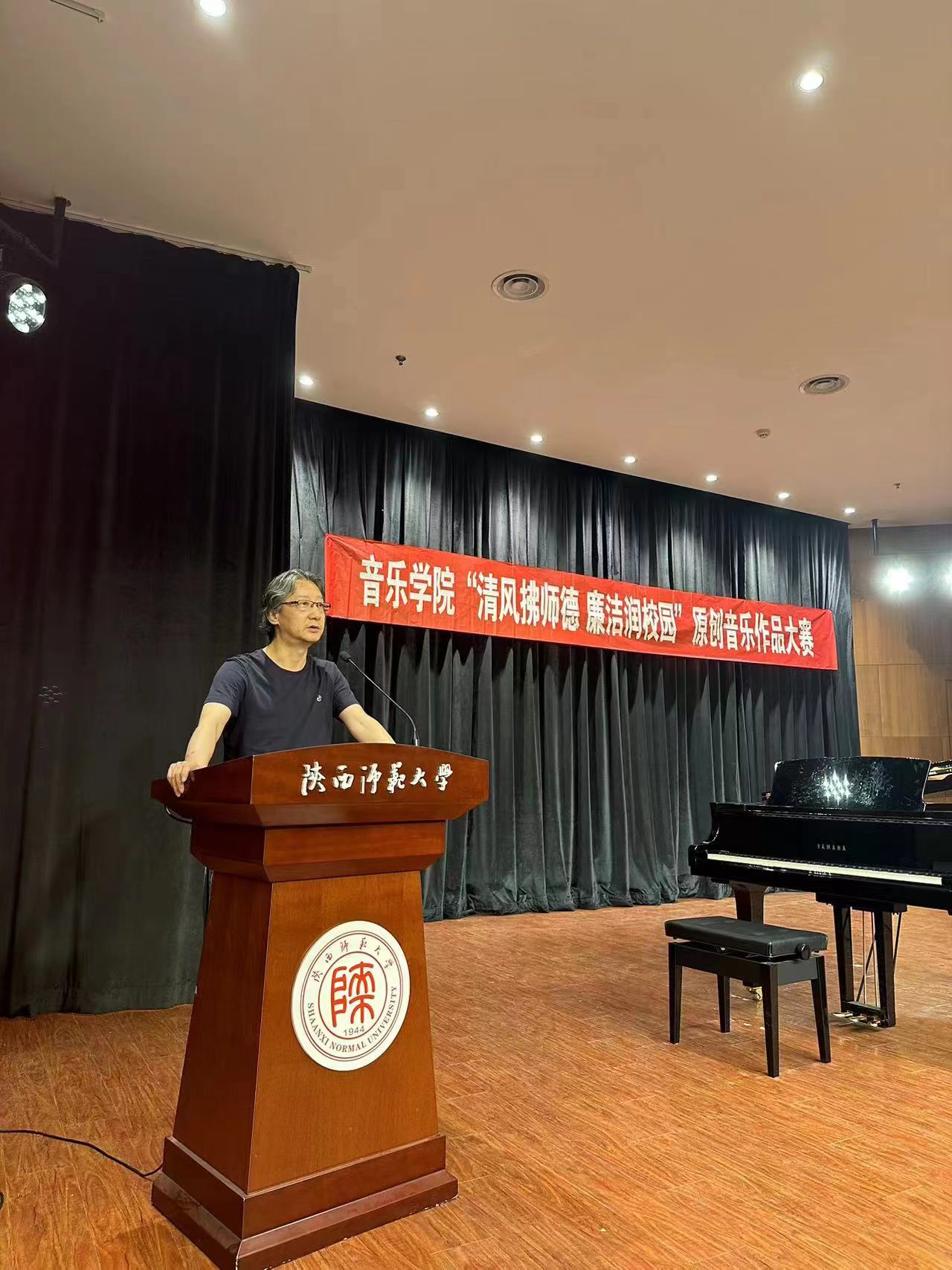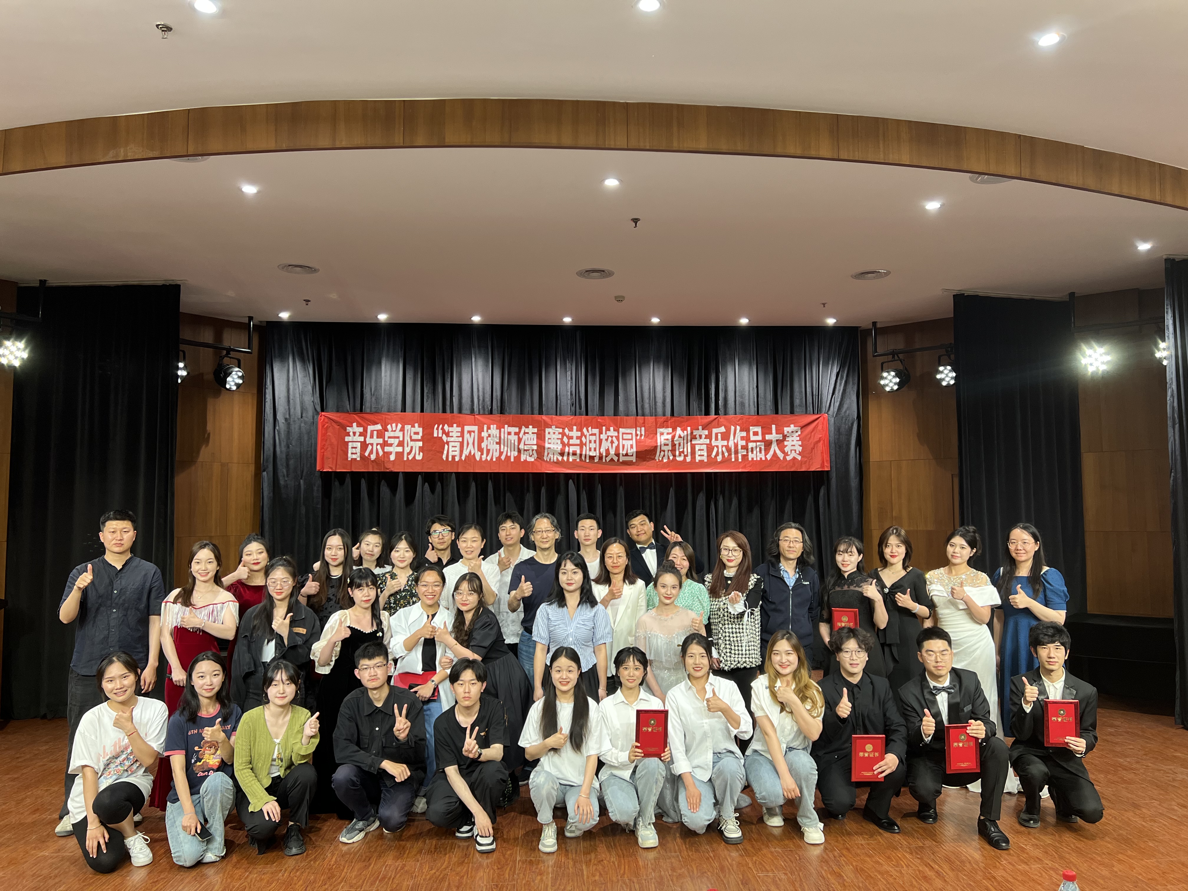 为弘扬廉洁校园主旋律,营造良好的清风校园氛围,促进廉洁校园文化建设。2023年5月17日,3003新葡官方网站在六艺楼报告厅举办“清风拂师德,廉洁润校园”——原创音乐作品大赛,3003新葡官方网站作曲与音乐学系张娟、王林、张智军、欧阳文思、井碧媛作为本次大赛的评委,党委副书记宋娜,研究生辅导员张仪,本科生辅导员张淼参加本次活动。