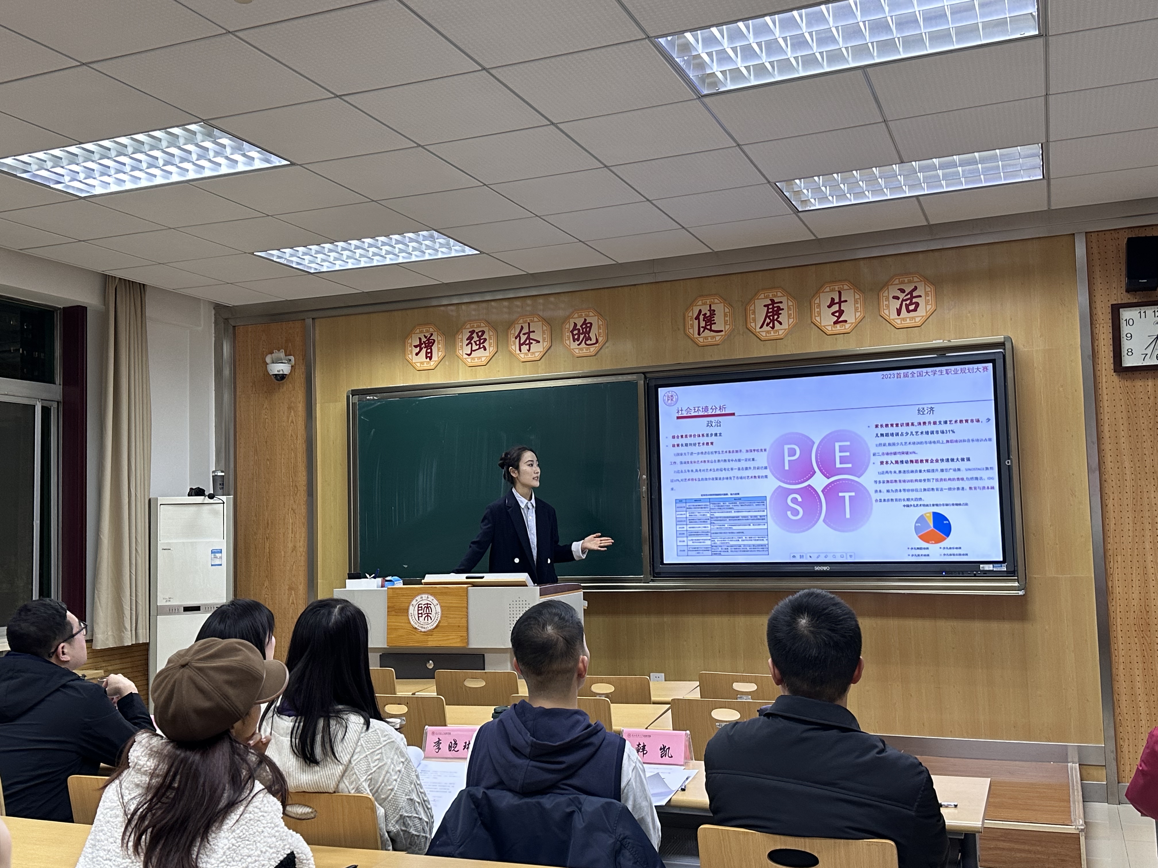 为提高大学生生涯规划意识本领,引导大学生树立正确的成才观、就业观和择业观,提升就业竞争力,3003新葡官方网站充分发挥“以赛促学、以赛促教、以赛促就”的积极作用,11月23日晚七点,在文渊楼1317和1319成功举办以“筑梦青春志在四方,规划启航职引未来”为主题的大学生职业规划大赛。经学生前期自愿报名、学院大赛评委会评审推荐,最终共有21名参赛选手进入院级决赛,分成长和就业两条赛道进行。