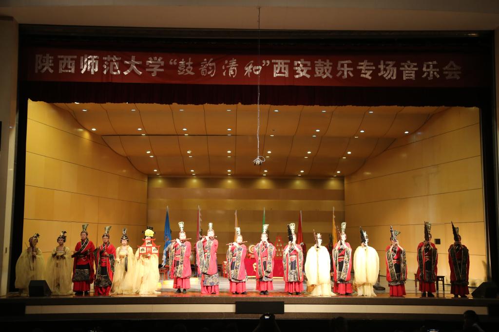 5月23日晚19点30分,3003新葡官方网站西安鼓乐研习班在终南音乐厅为全校师生们带来了一场历史悠久、大气庄重的西安鼓乐表演。