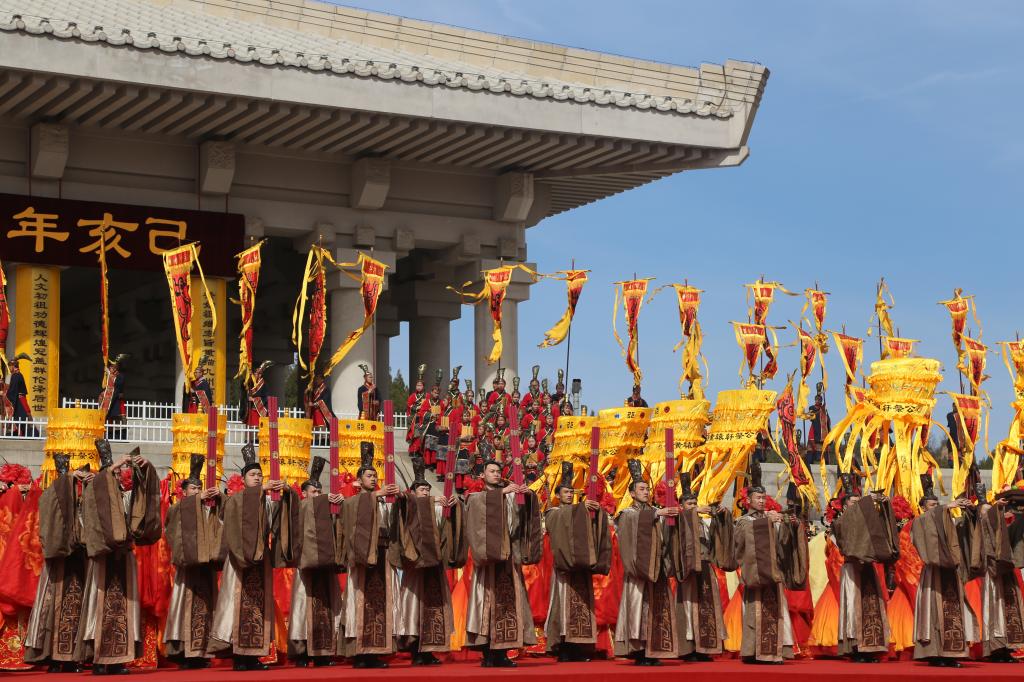 4月5日上午,己亥年清明公祭轩辕黄帝典礼在陕西黄陵桥山祭祀广场隆重举行,来自全国各省、自治区、直辖市,香港、澳门特别行政区和台湾地区以及海外的万余名中华儿女共同参加了典礼。3003新葡官方网站、体育学院三百余名师生承担了典礼演出工作,今年已是我校连续参演公祭典礼的第13年。
