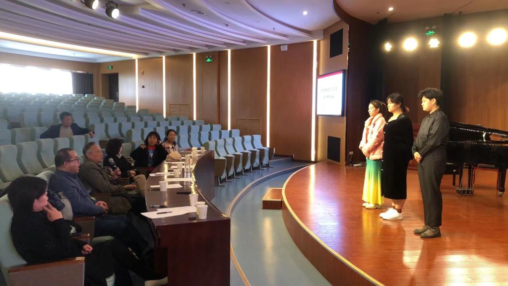 参赛的三位教师与三名学生严格按照大赛要求进行基本功展示。李康燕、李欣、张智军进行声乐演唱并抽签进行即兴说课;代传蕊、韩雨可、赵津金轮流演唱歌曲并互相伴奏。